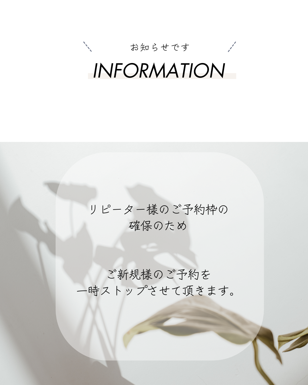 まつげエクステご新規様ご予約一時ストップのお知らせ