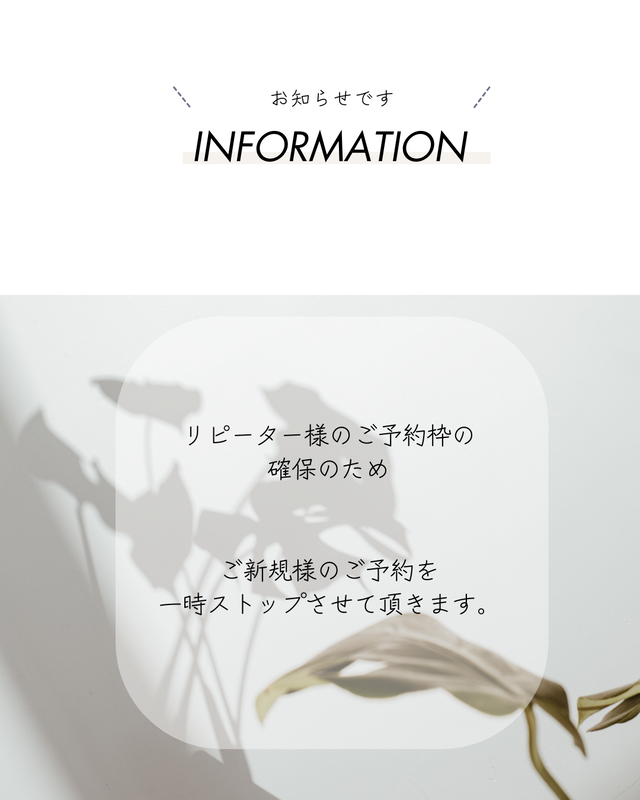 ご新規さまのご予約は一旦ストップさせて頂くこととなりました。